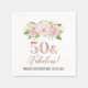Customisable napkins for 50th birthday party with light blush pink watercolor flowers and rose gold text.