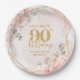 Blush Pink Watercolor Gold 90th Birthday Party Paper Plate