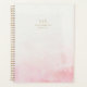 Blush pink watercolor gold monogram planner with elegant pastel watercolor design and chic gold typography. This modern spiral planner features a stylish monogram and name on the cover, making it perfect for organising daily tasks, journalling, or note taking. A feminine and timeless stationery choice for students, professionals, and anyone who loves sophisticated planning tools.
