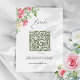 This romantic and chic wedding design features a lush bouquet of soft pastel blush pink and ivory roses and sage green foliage. Includes editable text fields and elegant flowing custom calligraphy text graphics and a unique QR code for your wedding website address.