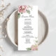 Set the perfect table with this wedding dinner menu card, featuring an elegant calligraphy script in soft blush pink. Adorned with a watercolor floral design and rose garden greenery, this menu adds a romantic touch to your boho reception decor or rehearsal groom’s dinner. The stylish calligraphy script and classic typography style beautifully present each guest meal course, creating an elegant and timeless dining experience. Shop now for the perfect wedding table detail!