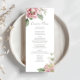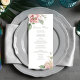 Enhance your wedding celebration with this wedding dinner menu card, featuring an elegant calligraphy script in a blush pink and sage green palette. Designed with a watercolor floral design and stylish calligraphy script, this menu perfectly complements boho reception decor and a rehearsal groom’s dinner. The rose garden greenery accents add a soft, romantic touch, while the classic typography style beautifully showcases each guest meal course. A timeless addition to your wedding table