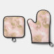 Blush pink white gold royal peacock bird oven mitt & pot holder set