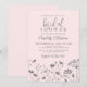 Simple Wildflower Boho Bridal Shower Invitation. Perfect for spring through autumn celebrations, this minimalist design features a blush pink background on both the front and back for a soft, romantic, and timeless look. A simple white outline wildflower art border sits along the bottom, creating a clean blush pink and white palette that feels elegant, modern, and subtly cute.