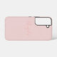 This phone case features a pink name, monogram set or initials in a flowy scripted style font on a blush pink background.