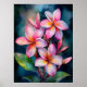 Beautiful and exotic plumeria are seen in a lovely tropical flower arrangement. This digital work of art was inspired by my tropical gardens on the island of Maui. It was created using a series of watercolor and dry brush techniques.