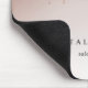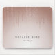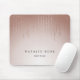 Chic personalised mousepad displays your name, business name or choice of custom text in classic black lettering on a blush pink ombre background adorned with strands of faux rose gold foil string lights.