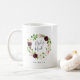 A sweet and elegant gift for your bridal party, mug features a blush pink and burgundy watercolor floral wreath with "bridesmaid" inscribed inside in hand lettered script. Personalise with your wedding date beneath. Designed to match our Blush Romance collection.