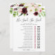 Chic floral bridal shower game card matches our Blush Romance bridal shower collection and features a top border of blush pink and burgundy watercolor flowers with lush green botanical foliage. Double sided card lets you get two games in one! Front features He Said, She Said and reverses to a wedding themed word scramble. Personalise with the bride to be's name and date of shower. For additional customisation, feel free to contact me!