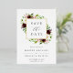 Our Blush Romance wedding save the date frames the words "save the date" with an elegant border of burgundy marsala, blush pink and ivory flowers with lush green foliage with gold foil accents. Personalise with your names, wedding date, and location beneath, and add additional details to the back.