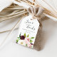 Attach these elegant floral tags to your wedding favours to say thank you to guests in chic style. White tags feature a cluster of watercolor flowers in burgundy marsala, blush pink and ivory, with lush green botanical foliage. "Love and thanks" appears in handwritten script lettering with your names and wedding date beneath. All text is editable for ultimate customisation. Designed to match our Blush Romance wedding collection.