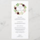 Chic floral wedding menu features your starter courses, entrees and desserts in elegant lettering, with your names and wedding date encircled by a watercolor wreath of flowers and foliage in blush pink, burgundy marsala, ivory and spring green. Coordinates with our Blush Romance wedding collection.