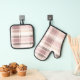 Blush Rose Cream Brown Stripes Bridal Shower Oven Mitt & Pot Holder Set