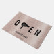 Modern Blush Rose Gold Glitter Blow Dry Bar Hair Salon Open Welcome Doormats.