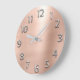 Blush Rose Gold Peach Grey Metallic Arabic Number Large Clock