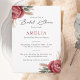 Celebrate the bride-to-be with this elegant bridal shower invitation featuring blush roses, soft pampas grass, and romantic boho greenery. The modern script and classic serif font pair beautifully with the warm floral artwork. Fully customisable with name, host info, date, location, RSVP, and registry details. Ideal for rustic or garden-themed bridal showers.