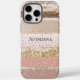 Blush Rose Pink Chocolate Gold Glitter Stripes Case-Mate iPhone Case