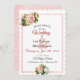 Colours: Roses pink, coral, rose gold, and green. Elegant wedding invitation with all the details: wedding date and time, address along with the reception and dinner details. Add your own information in the customise area.