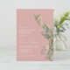 Formal birthday dinner invitations with a modern, off-centre design and a botanical flourish. White text on a feminine blush colour background. The reverse side features a coordinating pattern.
