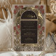 Invite your loved ones to celebrate your union with this exquisite Islamic Wedding Invitation, featuring a sophisticated Art Nouveau design. The invitation boasts a warm blush background with sage green and gold foil accents that exude elegance and charm. The front cover is graced with a stylised tree of life motif, symbolising growth and unity, flanked by laurel leaves and monogrammed with the couple's initials 'A' and 'S' in a tasteful gold script. Turning to the back, your guests will be greeted by a beautifully detailed frame with lush florals in shades of blush, sage, and cream, elegantly wrapping the essential details of your special day. The intricate gold detailing and traditional Arabic calligraphy merge to create a seamless blend of cultural heritage and classic beauty, perfect for a wedding that celebrates love, tradition, and artistry.