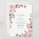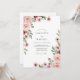 This watercolor design showcases soft blush roses and deep wine-coloured blossoms amidst a spray of sage green foliage. The aesthetic is graceful and airy, capturing a romantic mood suitable for spring or summer. Delicate floral clusters create a serene botanical composition with a refined painterly finish.