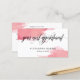 A chic and eye-catching makeup appointment card with "your next appointment" written in a gorgeous black calligraphy script against a white background splashed with watercolor of different hues of pink.