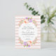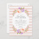 Whether you can't gather for a party due to Covid 19 social distancing guidelines, or long distance family and friends are just too far away, this beautiful Baby Shower by Mail invitation will allow loved ones to celebrate your new baby from anywhere. This pretty botanical design features a watercolor frame of peach and lavender flowers on a blush striped background. Use the design tools to customise the text, edit the fonts and colours or add your own photos to create an elegant spring floral baby shower invitation.