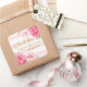 Bridal Shower thank you favour tag stickers in light pastel pink blush and white stripes pattern with pink watercolor flowers and gold colour text. A great way to decorate wedding shower favours.