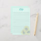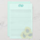 Sunflower, lined writing paper, with monogram initials at the top. Personalise with three initials in teal blue cursive, at the top of pale blue-green paper with lines.