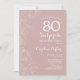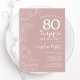 Blush pink and white floral surprise 80th birthday party invitation. Elegant modern design featuring botanical accents and typography script font. Simple floral invite card perfect for a stylish female surprise bday celebration. Can be customised to any age. Printed Zazzle invitations or instant download digital printable template.