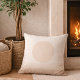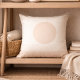 Warm neutral accent in blush taupe undertones and ivory, featuring a soft beige sun circle rising from a smooth base with subtle texture detail. Designed for refined feminine interiors, it layers beautifully on a bed, reading chair, or living room sofa to ground neutral palettes with balanced color and modern sun motif.