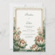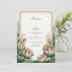 Capture the essence of sophisticated romance with this stunning botanical design. The composition features large, intricate Astrantia blooms in a unique palette of blush pink and muted teal, gracefully framing the corners. Set against a clean, off-white background, the artwork is anchored by a refined double gold foil frame and accented by a whimsical dusting of shimmering gold stardust. The contrast between the organic, vintage-inspired floral textures and the polished metallic borders creates a high-end, luxurious vibe for your celebration. This is a wedding invitation. It is a premier choice for a modern vintage wedding, an elegant garden ceremony, or a sophisticated tropical-inspired reception. The unique blush and teal color story makes it ideal for couples looking for a botanical aesthetic that feels both timeless and creatively distinct.