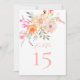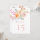 A simple and modern baby shower table number with a hand-painted watercolor bouquet, script lettering, and elegant typography. The card is decorated with a floral arrangement in the top left-hand corner. There are roses, dahlias, snapdragons, eucalyptus, and more. The sign reads "table" in flowing script and the custom number below. Please note that you will need to customise and order each table number separately. Part of our Baby in Bloom | Blush & Teal Spring Floral Baby Shower set - view the collection on this page, below the product image! Feel free to message me with any questions, I'll be happy to help!