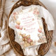 A sweet teddy bear baby shower design featuring soft blush flowers, pastel balloons, butterflies, and vintage toy blocks. The gentle colours and woodland-inspired details create a charming and timeless theme, perfect for celebrating the mum-to-be.