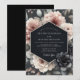 Experience a dramatic floral atmosphere with this elegant design. Lush, soft blush pink and cream peonies bloom against a dark, moody charcoal background. Hints of muted greenery and deep-toned blossoms add depth and romance, creating a sophisticated and tenebrous aesthetic for your special day.