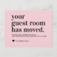 Your Guest Room Has Moved Moving Announcement featuring a modern script and font typography and a heart.