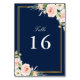 blush watercolor floral gold frame wedding table number