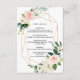 Elegant Wedding Details Card featuring painted watercolor flowers in blush pink, white and green foliage with a geometric gold frame. For more advanced customisation of this design, Please click the "Customise" button. Matching items are also available.
