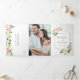 This all in one tri-fold wedding invitation card features painted watercolor flowers in blush pink, white and green foliage with a gold hexagon frame, add wedding details, rsvp, and your photo. For more advanced customisation of this design, please click the "customise further" link. Matching items are also available.