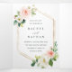 Blush White Bloom Gold Hexagon Frame Wedding Tri-Fold Invitation