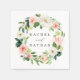 Elegant Wedding Personalised Paper Napkin featuring featuring a wreath of watercolor flowers in blush pink and white with green foliage and leaves. For more advanced customisation of this design, Please click the "Customise" button. Matching items are also available.