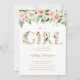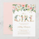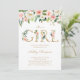It's a Girl! Invite family and friends to your event with this elegant floral baby shower invitation. It features blush peach and white flowers with faux gold foil floral letters. Personalise by adding names, date, time, venue and other details. This floral baby shower invitation is perfect for spring and garden baby showers.