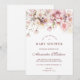 A soft and feminine design featuring watercolor pink blossoms and delicate greenery, perfect for celebrating the mom-to-be in timeless style. This floral piece combines romance and modern simplicity, ideal for spring or garden-inspired baby showers.