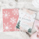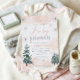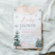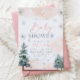 Winter blush baby shower invitation with snowflakes pine trees, and a boho design.