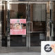 Blushing Coral Pink Watercolor Photo Makeup Studio Window Cling. Customize with your logo and photos and change the text if you wish.