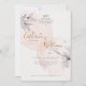 Blushing peach watercolor backdrop highlights this modern wedding invitation accented with pale grey hand drawn floral branches. The whimsical calligraphy along with classic topography adds elegance and clarity, that displays your wedding details in an awesome way. Easily personalise the text with your information on front and photo on back of card, to reflect your preferences.