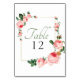 Blushing Pink Rose Floral Elegant Wedding Table Number