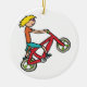 A BMX bike rider doing a wheelie on street bike. For fans of BMX riding, street biking and bicycle motocross.
