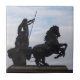 Tile with photo of statue of Boadicea (Boudica, Boudicca) holding a spear on a chariot with rearing horses, Westminster Bridge, London, England