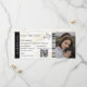 Modern minimalist monogram boarding pass wedding ticket with a simple white and brown background, a photo of the engaged couple, a plane with a loop trail, and an easily customisable save the date template. Don't forget to change the text on the back of the monogram.